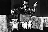 vorbehalten! 15.10.2000, 11 Uhr, Denkmalschmiede Höfgen: "Die drei kleinen Schweinchen und der Wolf" (Günther Lindner / Theater o.N.) Figurentheater nach dem gleichnamigen englischen Märchen in offener Spielform für Zuschauer ab 3 Die Schweinemutter wird mit ihren Kindern nicht mehr fertig. Sie schickt sie in die Welt hinaus. Dort wartet schon der Wolf auf sie. Und der hat Schweinchen zum Fressen gern und kennt viele gemeine Tricks. Ausstattung: Günther Lindner, Werner Hennrich; Regie: Werner Hennrich